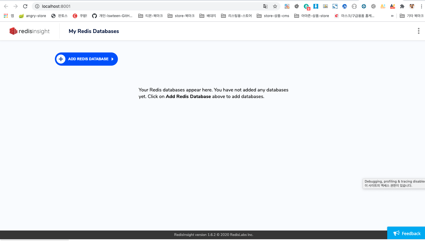 직접 localhost:8001 포트를 이용하면 redis 확인