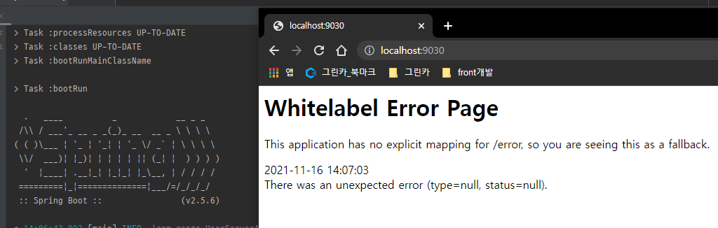 5. 정상적으로 Springboot 구동되는지 확인합니다.