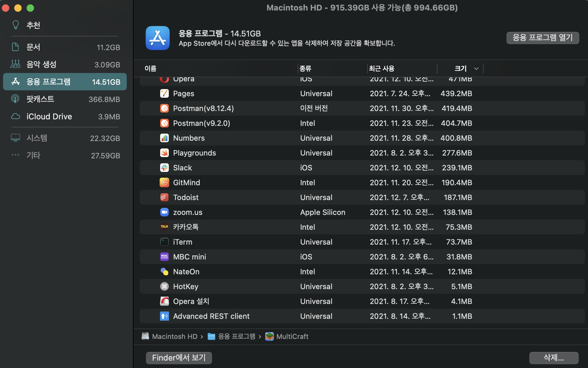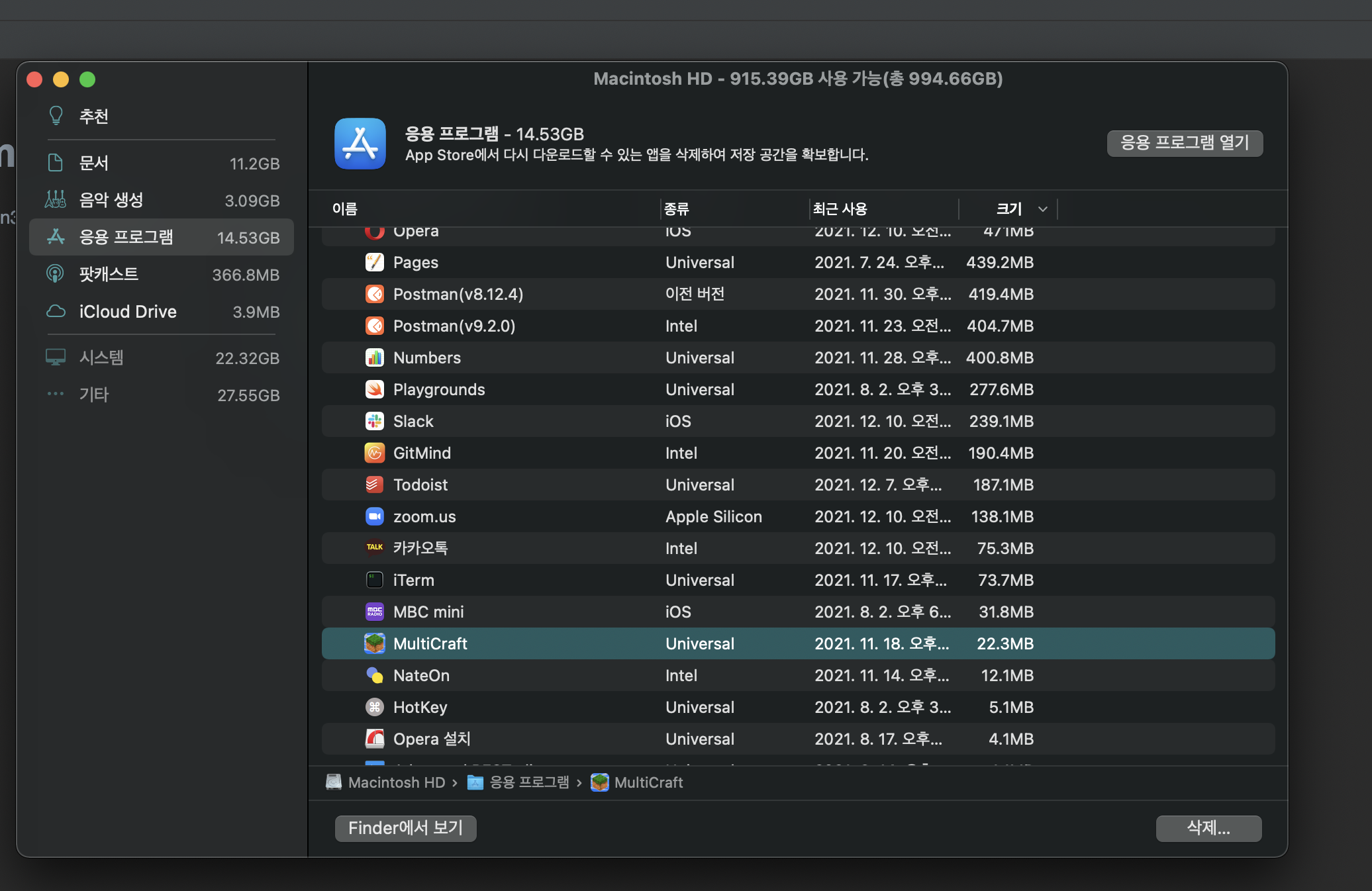 Mac을 처음 사용하거나 저처럼 대충대충 써보신분들을 위한 응용프로그램 삭제 방법에 대해서 알려드리도록 하겠습니다.