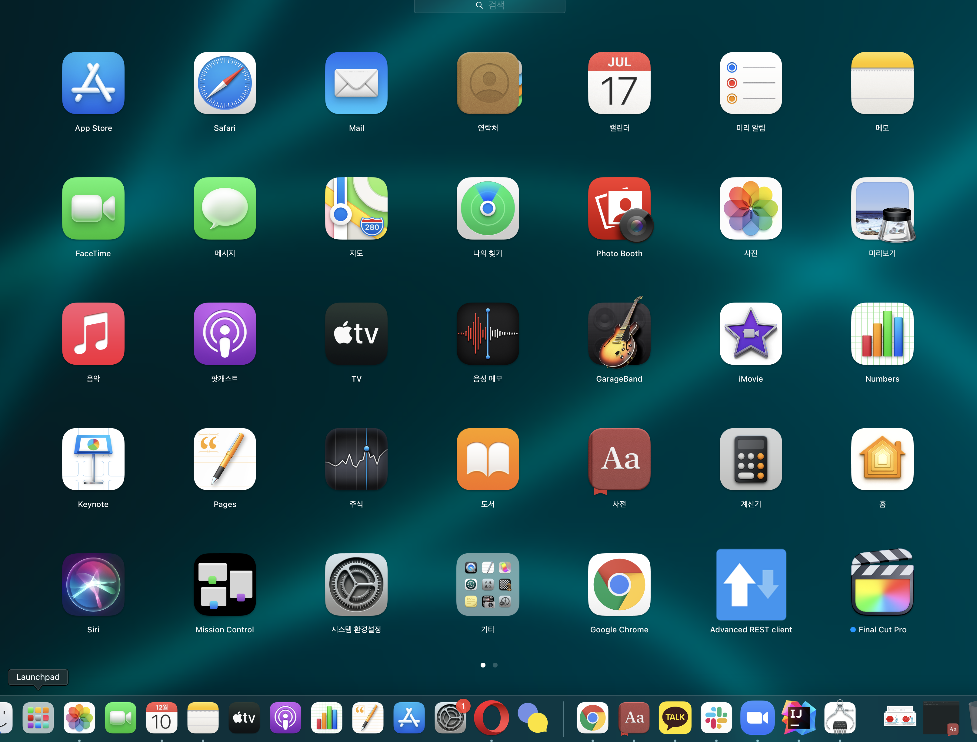 클릭하시면 이렇게 런처패드(Launchpad)가 뜹니다.