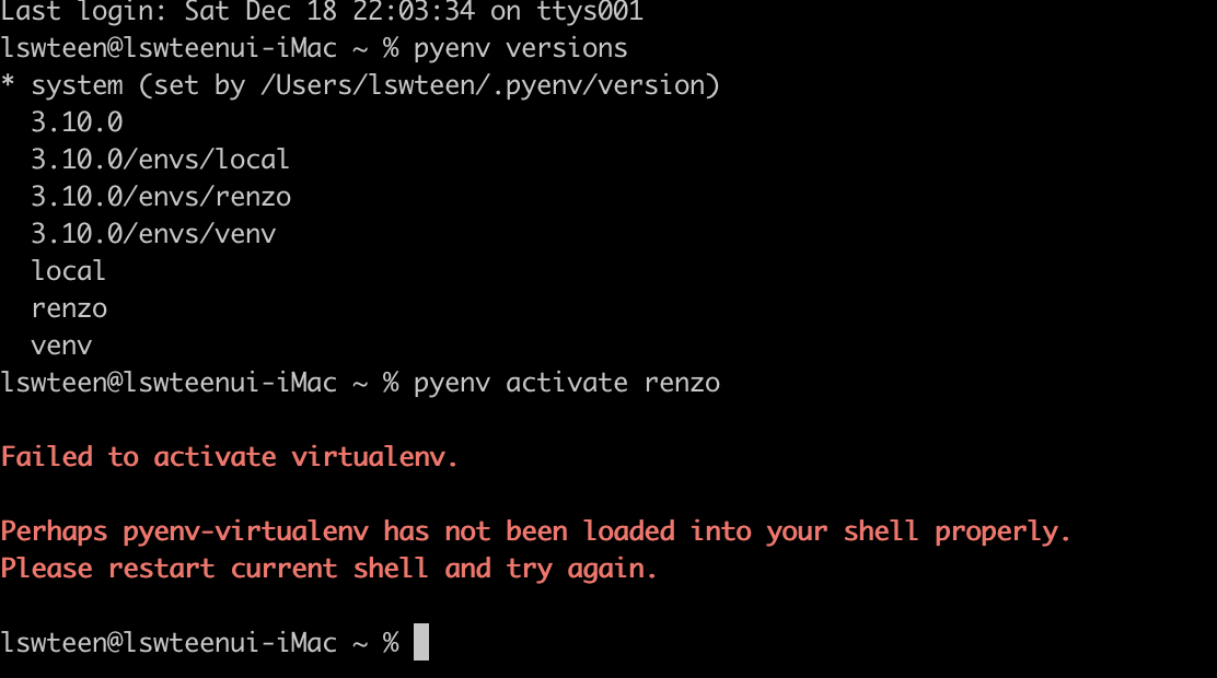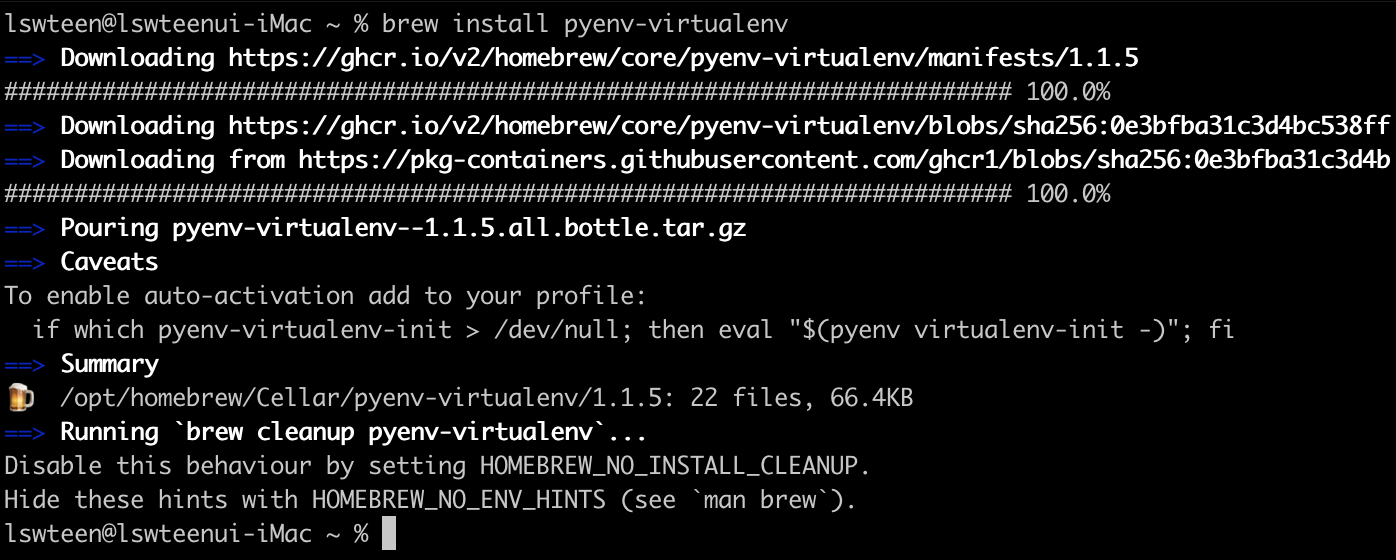 echo 'eval "$(pyenv virtualenv-init -)"' >> ~/.bash_profile