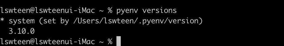 pyenv versions 명령어로 생성된 가상환경 이름과 버전확인이 가능합니다.