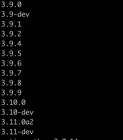 아래 이미지처럼 다양한 설치 버전 파이썬 목록 확인이 가능합니다.