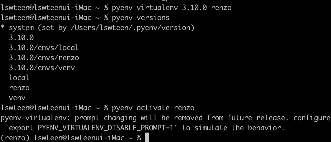 pyenv virtualenv {파이썬 버전} {가상환경이름}