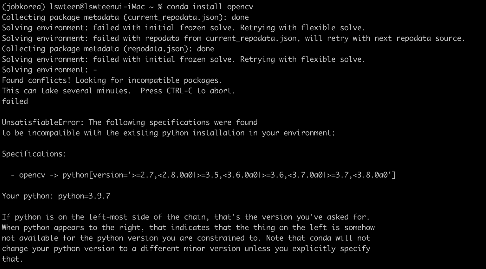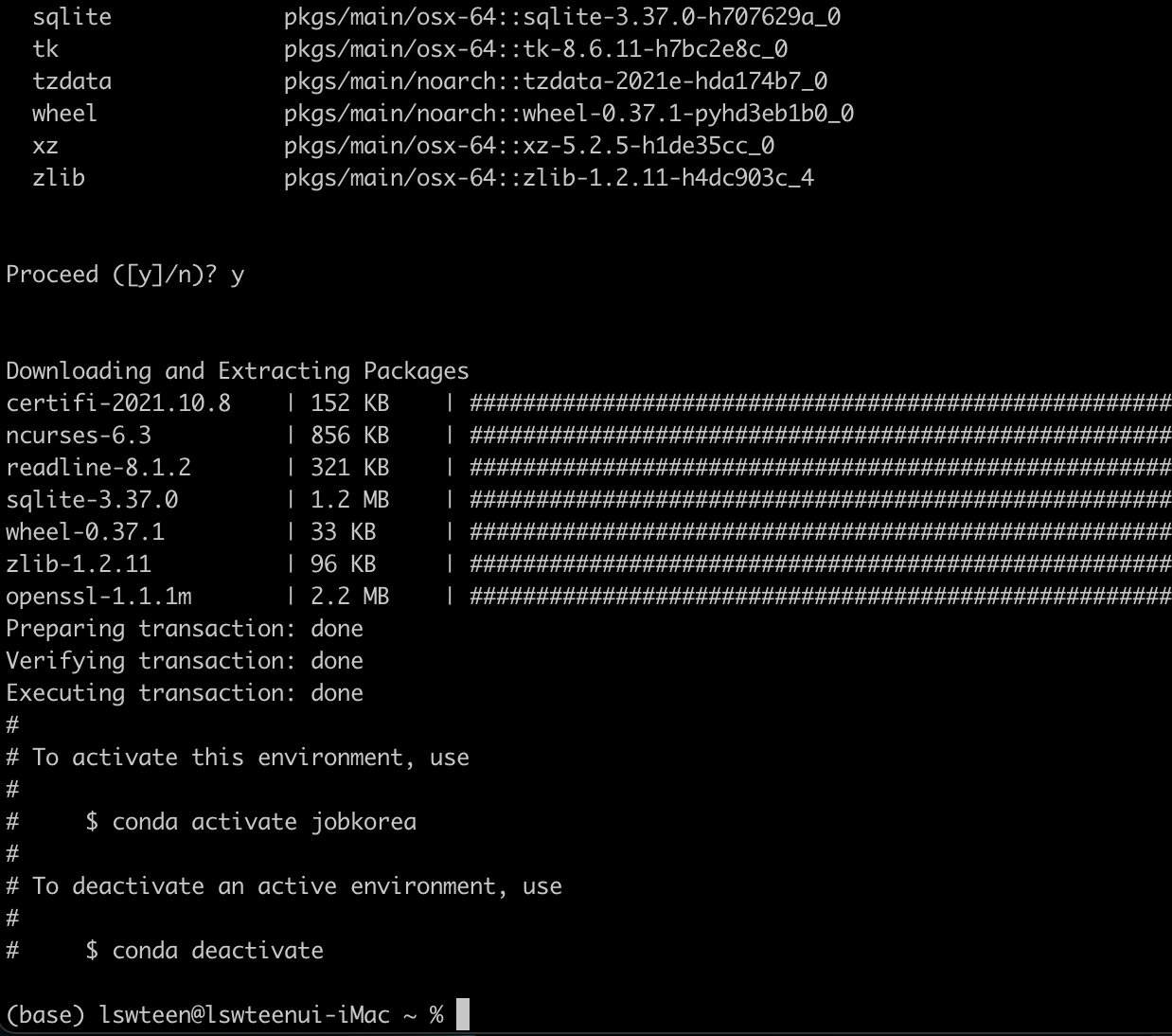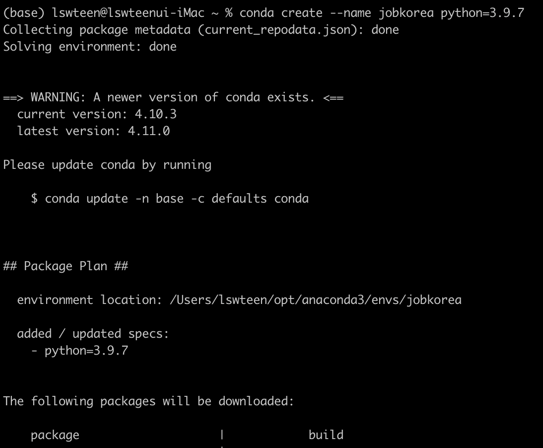 conda create --name jobkorea python=3.9.7