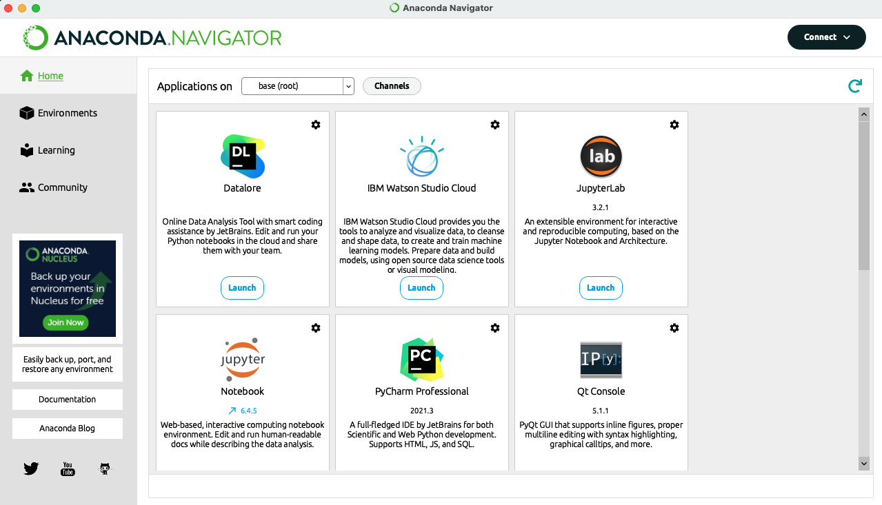 아나콘다는 M1칩에서 많이 사용하고있는 가상환경인것 같습니다.