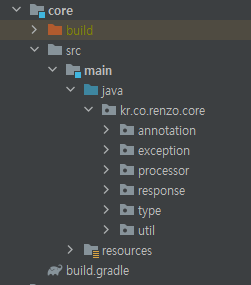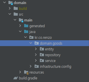 가장 많이 사용할수 있는 RDBMS 중심 도메인을 품고 있는 프로젝트는 아래와 같은 형태의 모듈이 만들어 집니다.