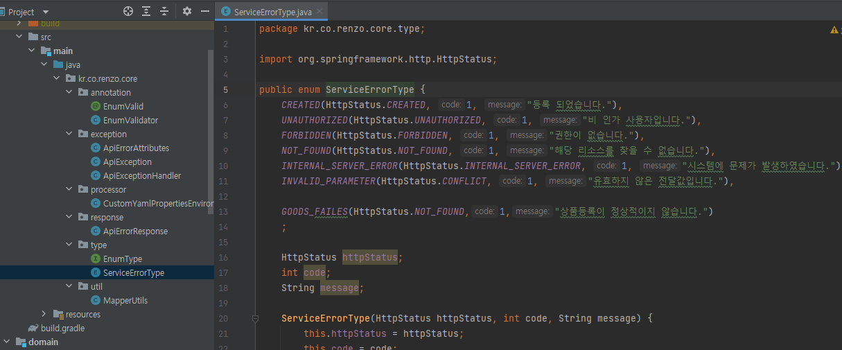 순수한 Java Class 정의 많이 사용되는 Static한 내용 Type 또는 많이 사용되는 utils로 구성해야합니다.
