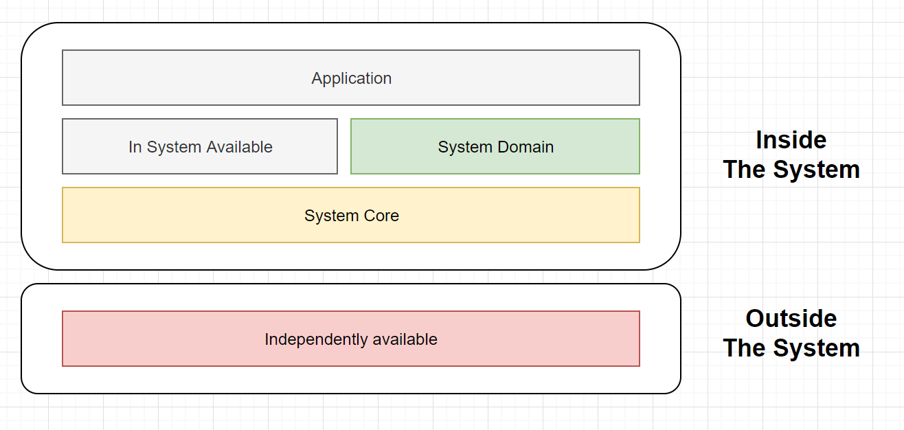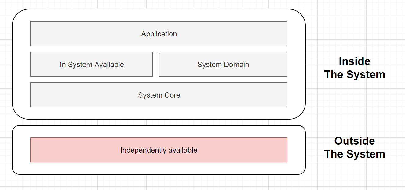 - 인프라스트럭츠 계층(Infrastructure) : independently available 독립적인 프로세스이며 RDBMS, In Memory, Nosql, Queue 에 속하며 Outside the System 이라고 표현합니다. Application에서 사용하기 위해서 Config설정이 필수적으로 필요합니다.