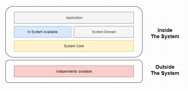 - 인프라스트럭츠 계층(Infrastructure) : independently available 독립적인 프로세스이며 RDBMS, In Memory, Nosql, Queue 에 속하며 Outside the System 이라고 표현합니다. Application에서 사용하기 위해서 Config설정이 필수적으로 필요합니다.