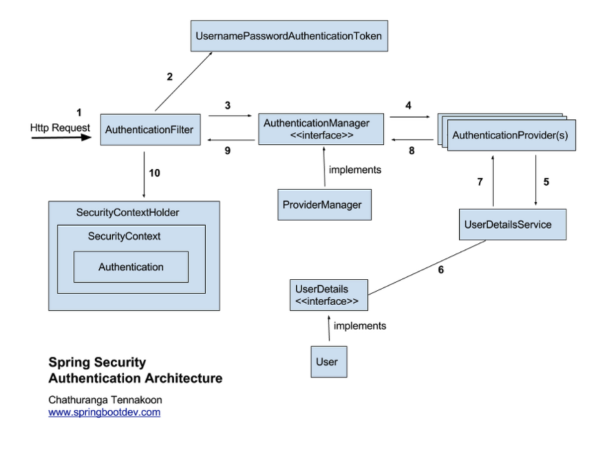 이러한 Spring Security 아키텍처는 많은곳에서 소개되어 있는 내용을 공유 하도록 하겠습니다.