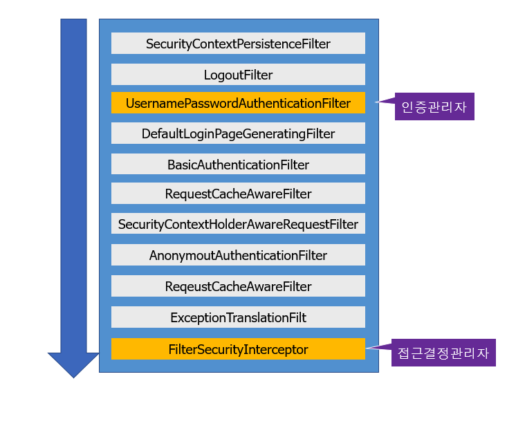 인증 과 권한에 대한 Filter 흐름을 처리하는 End Point 역활을 제공해줍니다.