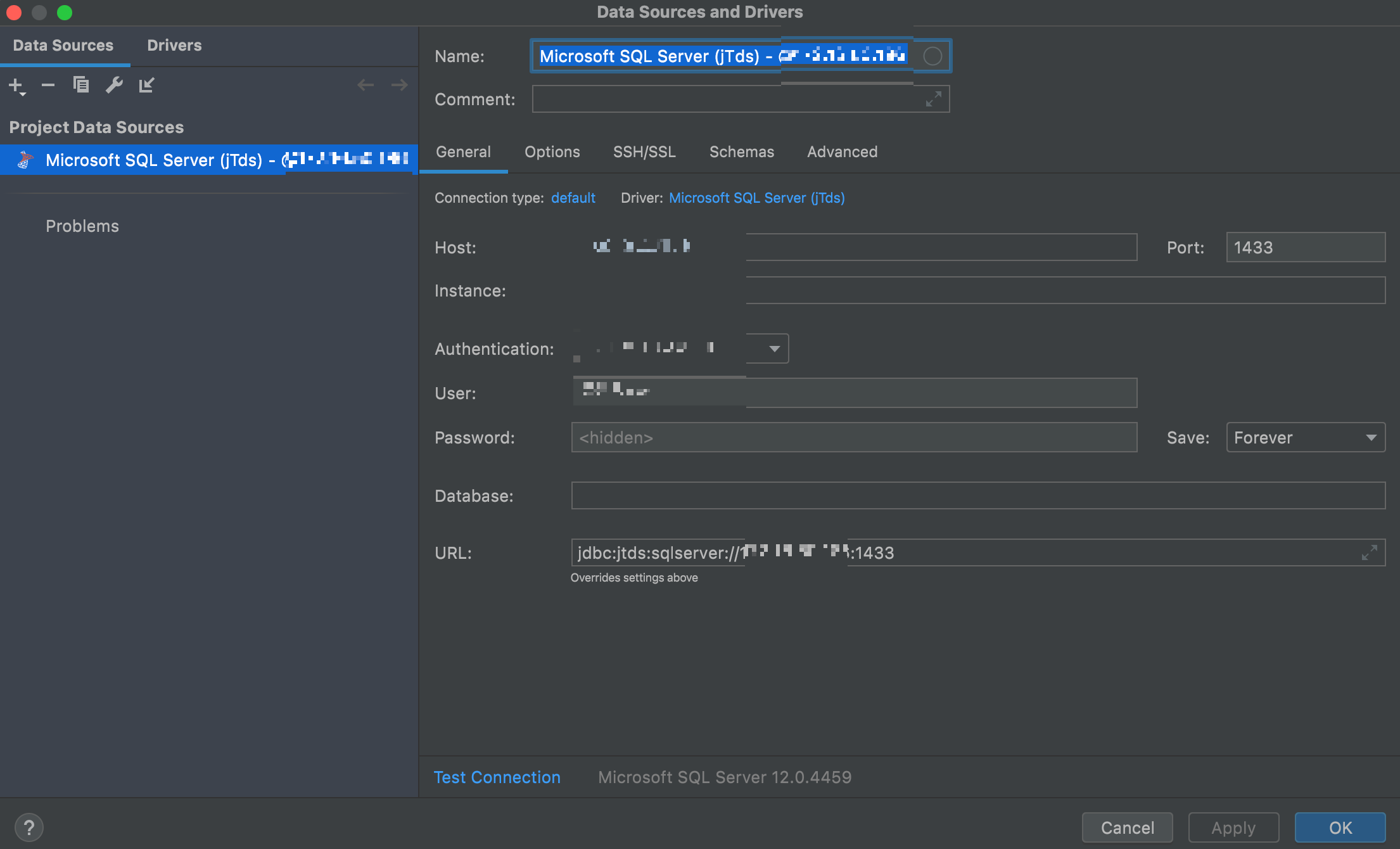 intellij 에서 제공하는 MSSQL 용 드라이브를 다운받아서 접속을 시도하면 접근됩니다.