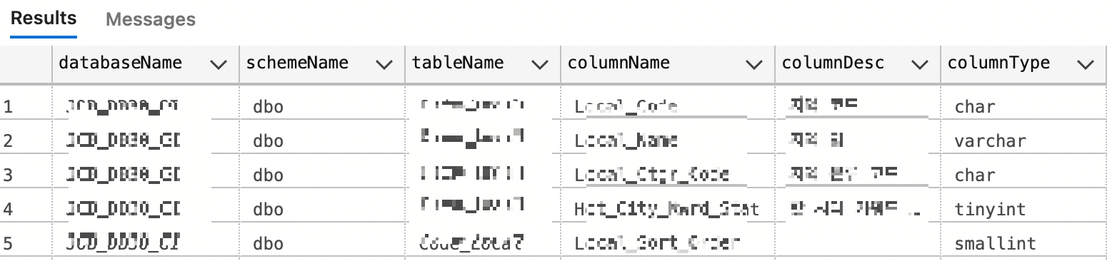 Join된 Database ColumnName ,ColumnDesc, ColumnType 검색하기