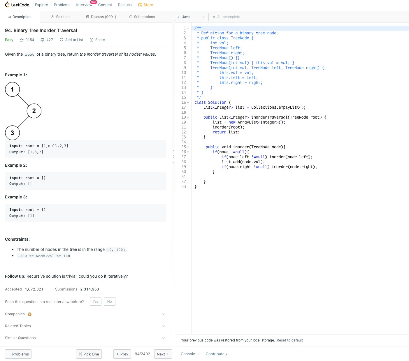 * leetcode : https://leetcode.com/problems/binary-tree-inorder-traversal/