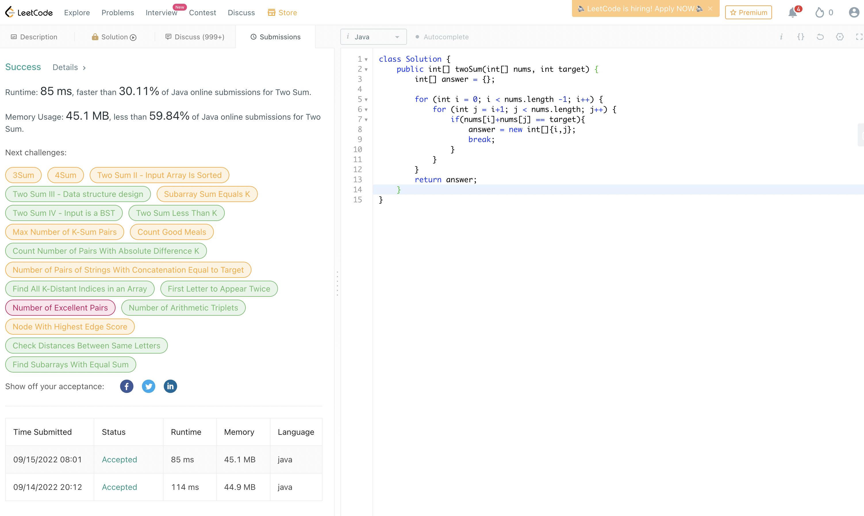 Leetcode에 해당 코드가 잘동작하는지 submit해보겠습니다.