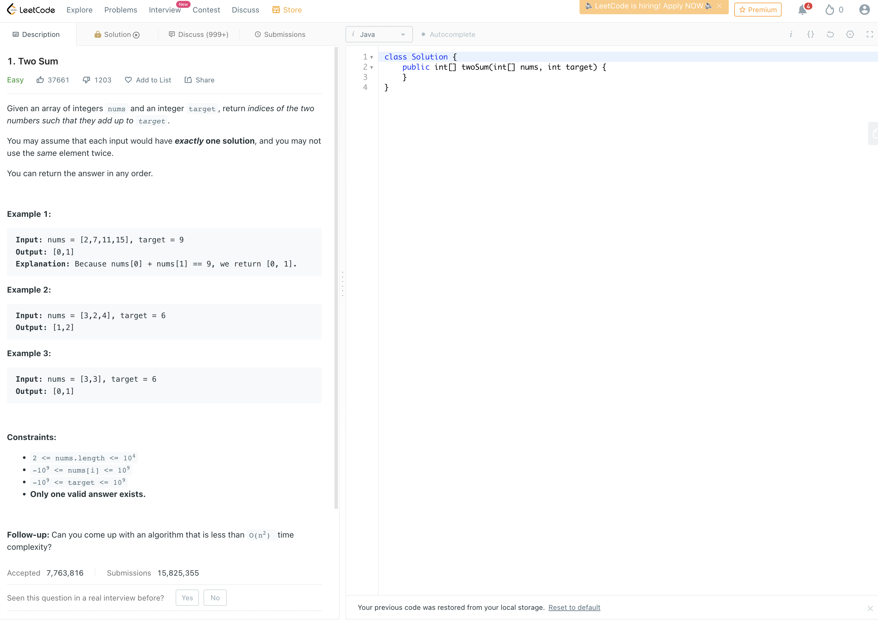 public int[] twoSum(int[] nums, int target) {