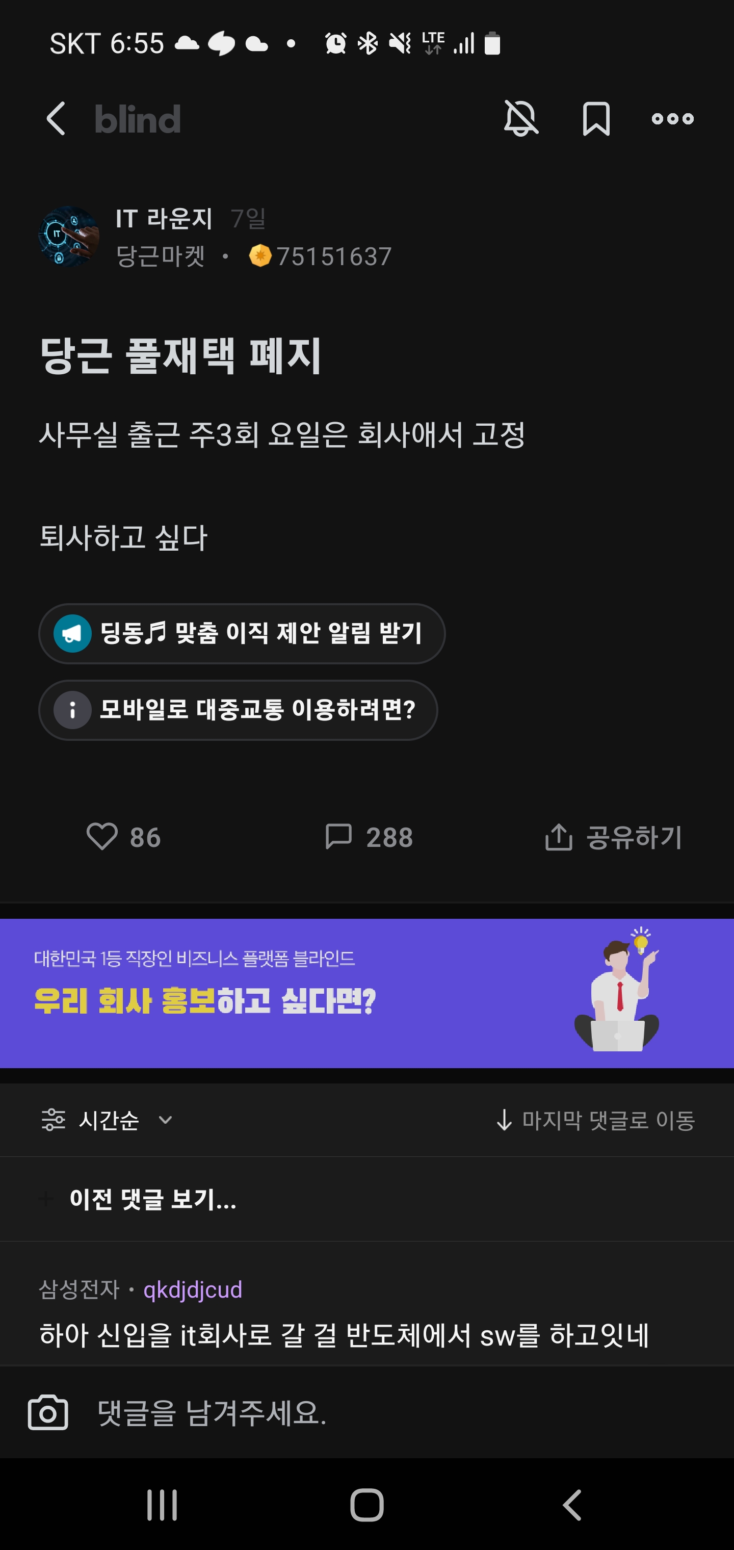 오늘 블라인드에서 당근 풀재택에서 주 3회로 재택한다고 슬퍼하던데 ......