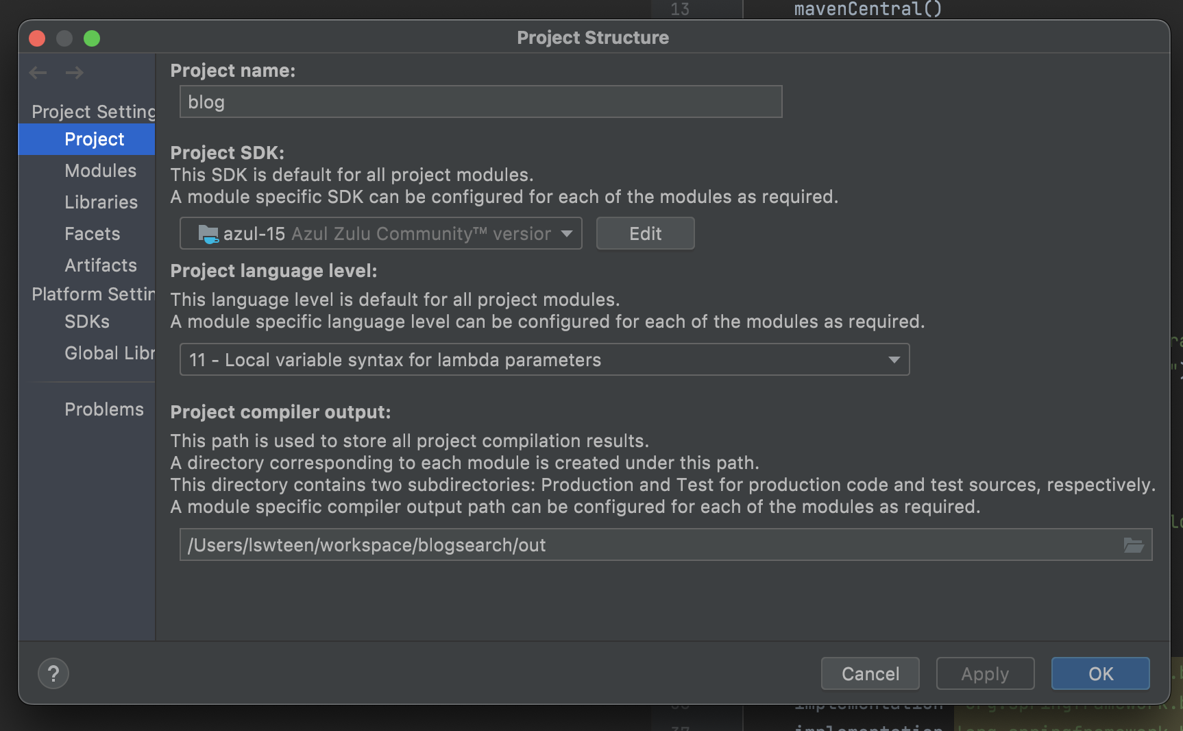 Start Spring io 에서 선택한 Java 버전이 11인데 Intellij 에서 이렇게 특정 버전으로 되어있는경우