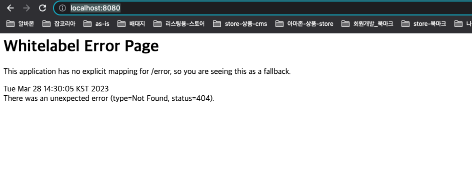 URI로 접근했는데 이렇게뜨면 정상구동된것이며 추가적인 Swagger, Rest Doc 작업전까지는 아래처럼 뜨면 정상입니다.