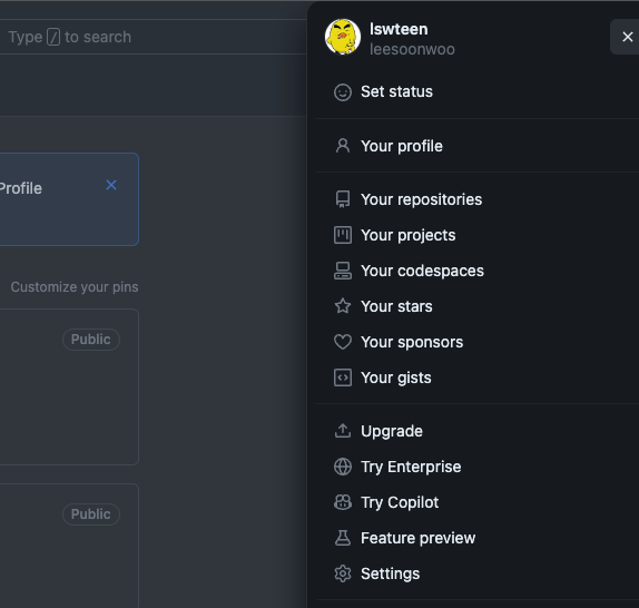 오른쪽 상단 > 프로필아이콘 클릭 > Settings