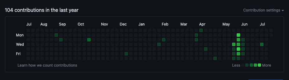 그래서 github에 대략 2달정도 빠짐없이 올렸는데 이상하게 녹색잔디가 깔리지 않다는것을 일주일전에 알게되었습니다.
