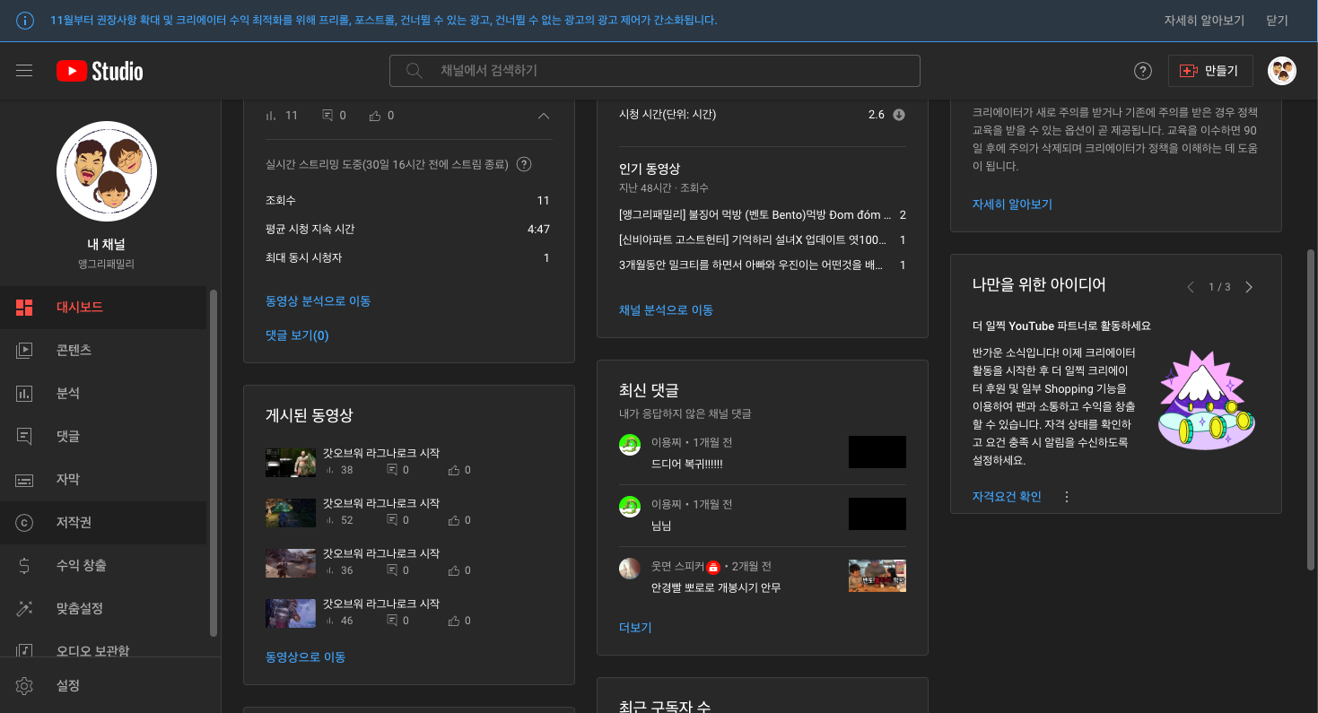 무엇보다 중요한건 꾸준한 지속력 그리고 하나의 컨텐츠가 알고리즘으로 높은 조회수가 올라갔을경우