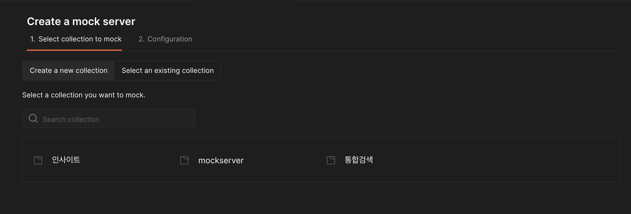 5. workspace 선택후 mock server 이름 생성후 Create Mock Server 클릭하시면 생성됩니다.