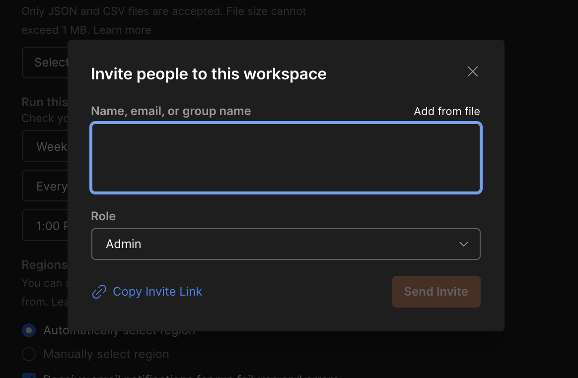 invite 버튼 클릭시 아래처럼 이름, 메일, 그룹이름 또는 초대 링크를 통해서 맴버 초대 가능