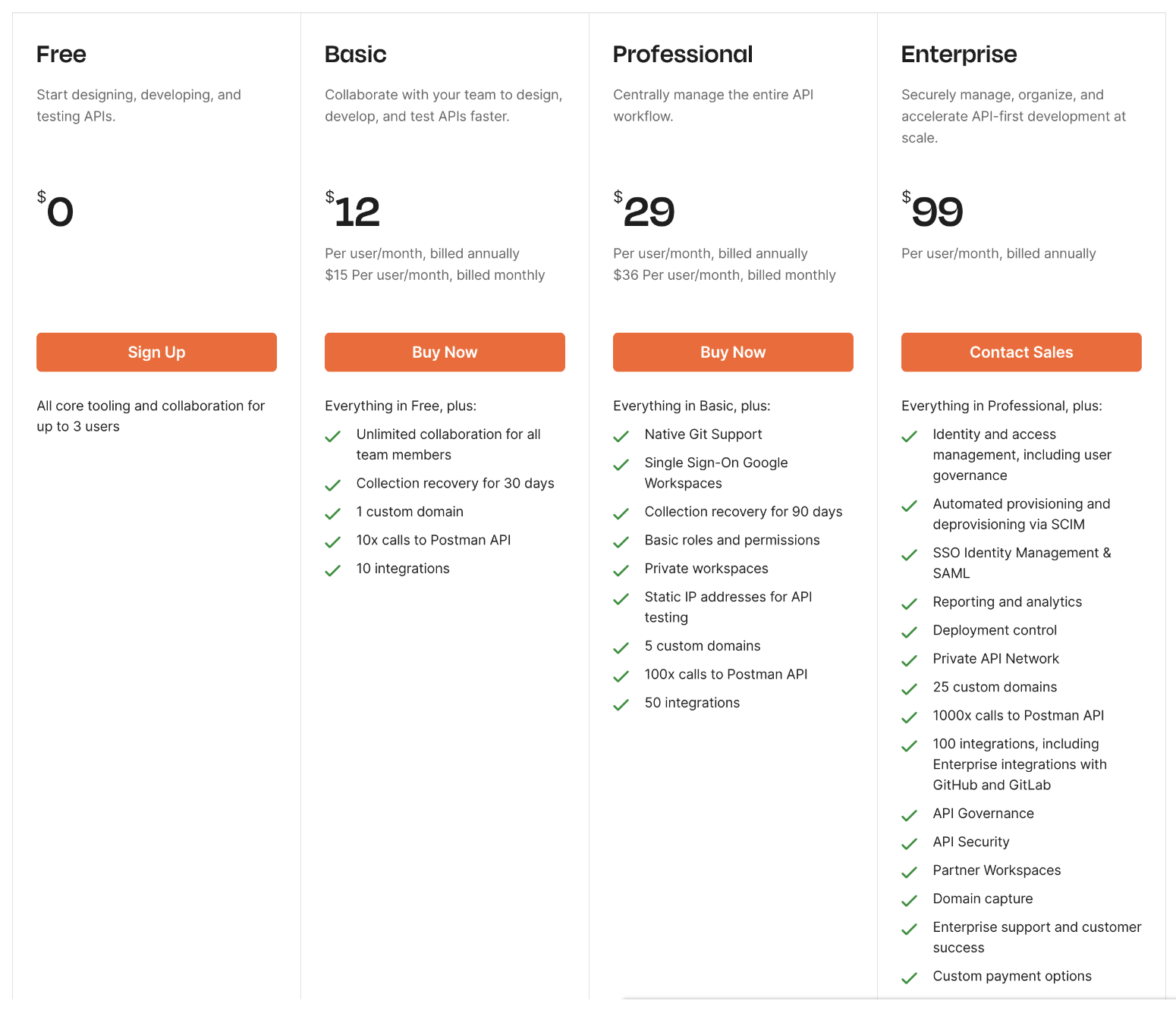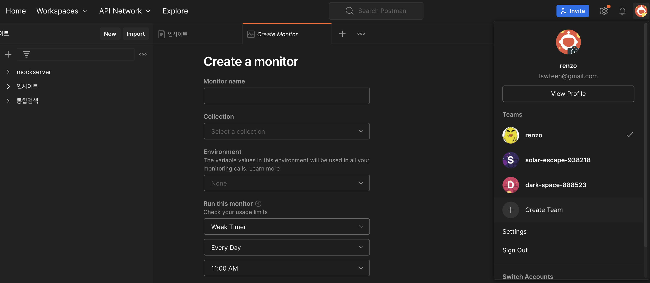 Personal, Team 개인, 팀 단위로 사용할수 있는 API console 이며 Team Workspace의 경우 3명까지 무료 입니다.