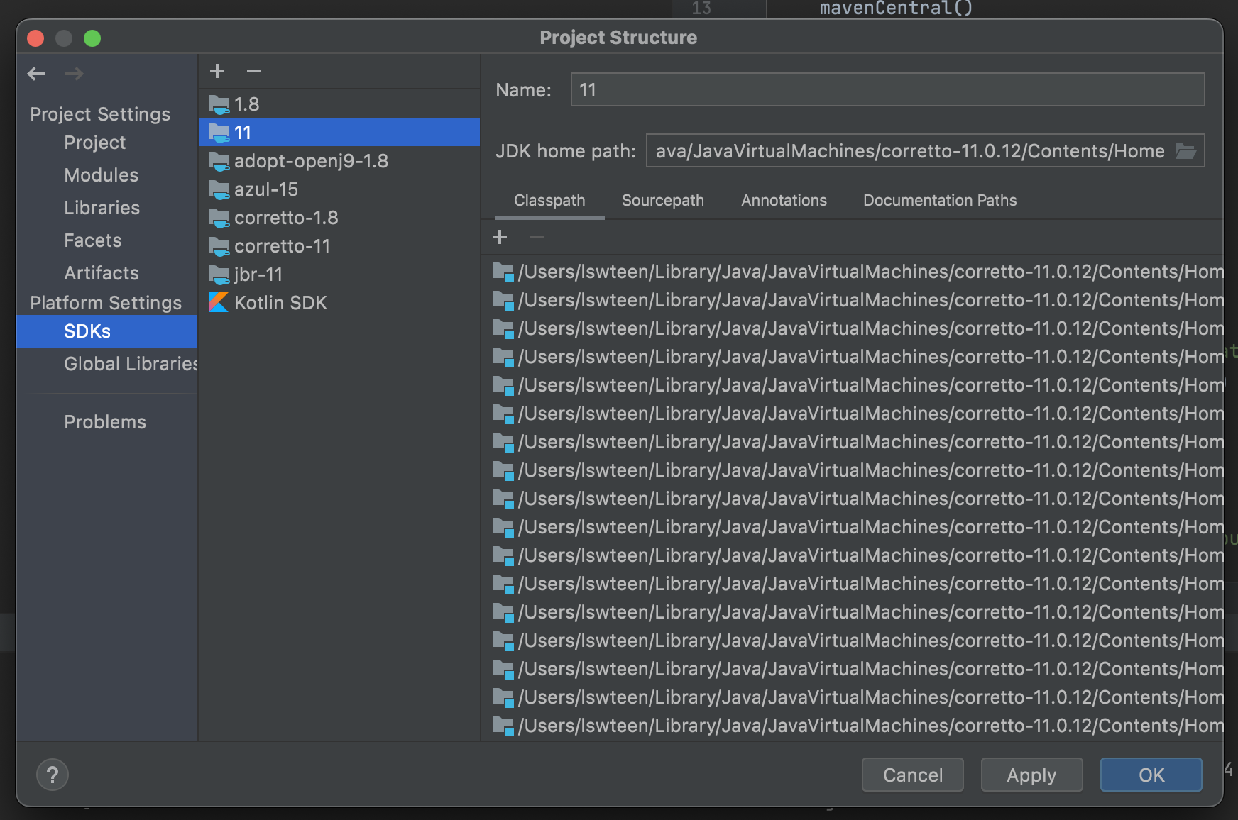 Start Spring io 에서 선택한 Java 버전이 11인데 Intellij 에서 이렇게 특정 버전으로 되어있는경우